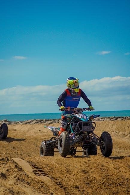Tread depth plays a critical role in maintaining traction and control, especially on challenging terrains. Use a tread depth gauge to measure the depth across the tire’s surface, ensuring even wear. Most ATV tires should have a minimum tread depth of 2/32″ for safe operation. Deeper treads provide better grip on mud, sand, or snow, while worn treads can lead to reduced performance and increased risk of skidding. Regular inspections help identify uneven wear, which may indicate misalignment or improper inflation. Replace tires when treads reach the wear bars or show signs of excessive wear. Proper tread maintenance ensures consistent performance, safety, and extends the life of your ATV tires.