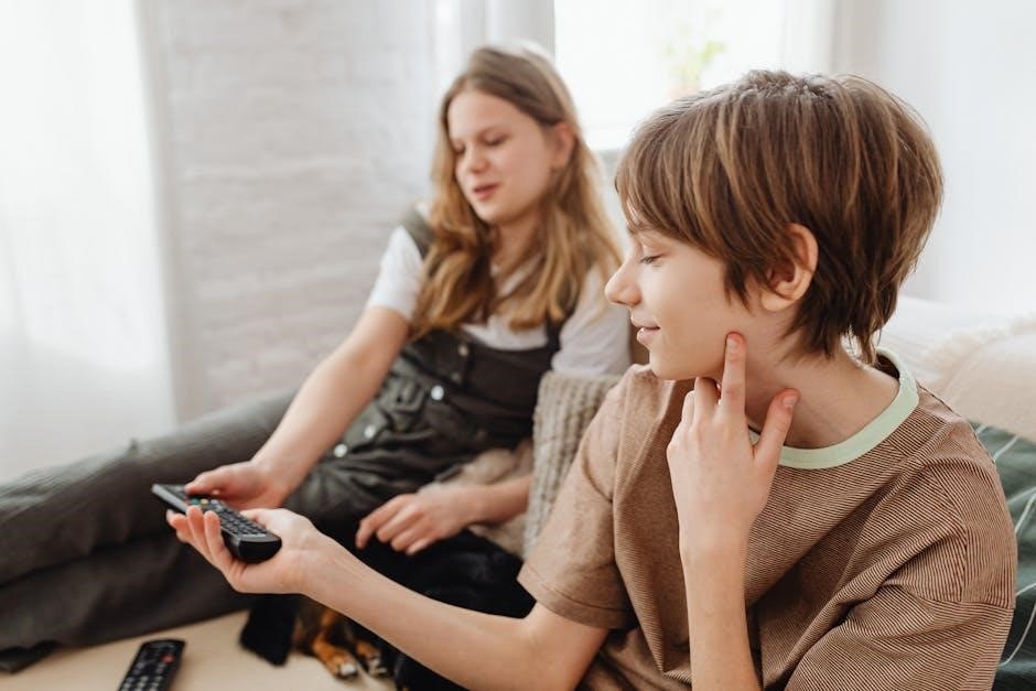 These manuals contain detailed diagrams illustrating button functions, menu navigation, and troubleshooting tips. They’re invaluable for understanding advanced features or resolving pairing issues. Having a digital copy ensures you always have access to guidance, even if the original is misplaced, aiding in effective remote control operation.